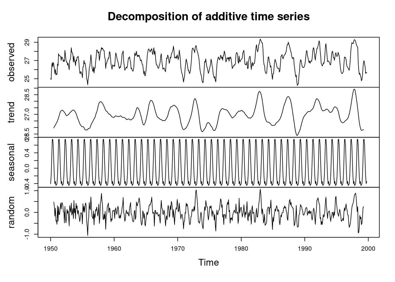 To interpret time-series data, it is useful to decompose the observations \(y_t\) into three components: