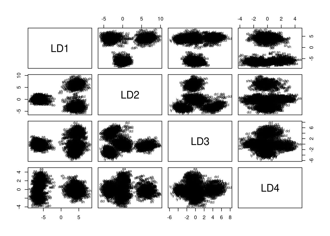 To exemplify linear discriminant analysis, we will use the phoneme speech recognition data set. This data set is useful for showcasing discriminant analysis because it involves five different outcomes.
