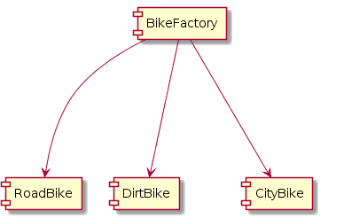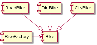 Let’s consider an example where the principle is not fulfilled, that is, where abstractions depend on details. Let’s assume we are concerned with bikes. To encapsulate the creation of different types of bikes, we create a class BikeFactory, which generates objects of the concrete classes RoadBike, DirtBike, and CityBike: