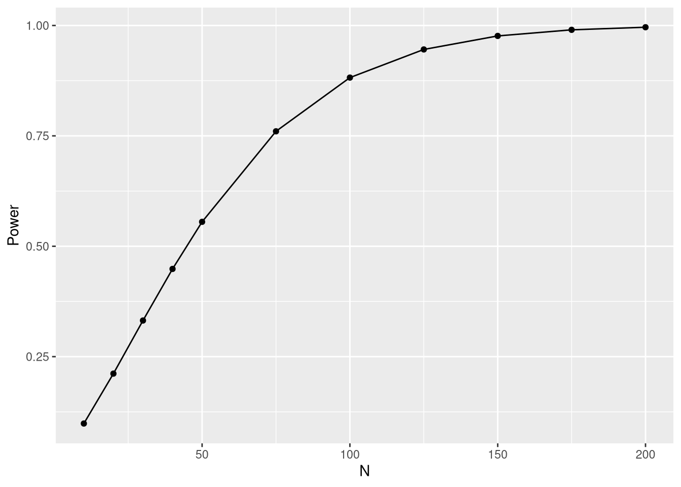 power.df <- data.frame("N" = sample.size, "Power" = power)